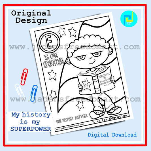 Black History Printable Coloring Page Educational PDF E is for Education Children Wall Art