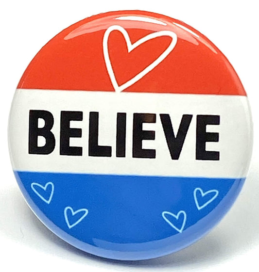 BELIEVE Inspirational Pinback Button Reward Button Empowerment