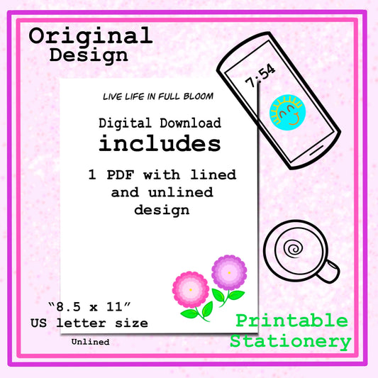 Full Bloom Printable Stationery Writing Paper Journal Floral Design Inspirational Quote