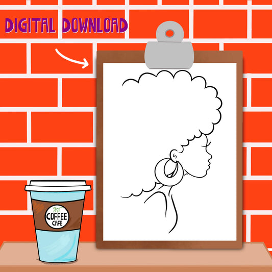 Minimalist Line Art Female Drawing Wall Digital Print African American Woman Illustration