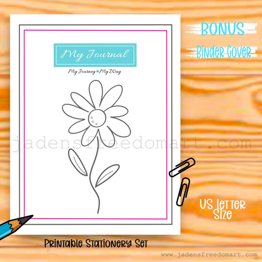 My Journey My Way Printable Journal & Stationery Set Floral Writing Pages, Gratitude List & Coloring Page Instant Download PDF