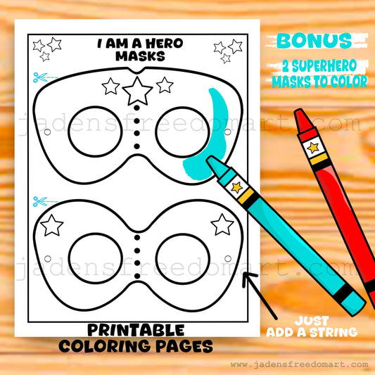Printable Superhero Activity Pages for Kids I Am a Hero Coloring Page Masks Wristbands Worksheets Instant Download PDF