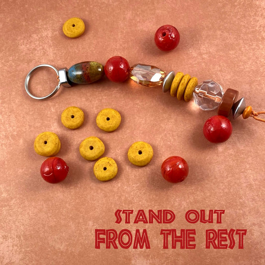 Earthtone Large Wooden Beaded Jewelry Handmade Keychain Purse Charm Backpack Accessories Planner Charm