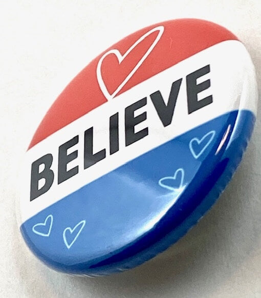 BELIEVE Inspirational Pinback Button Reward Button Empowerment