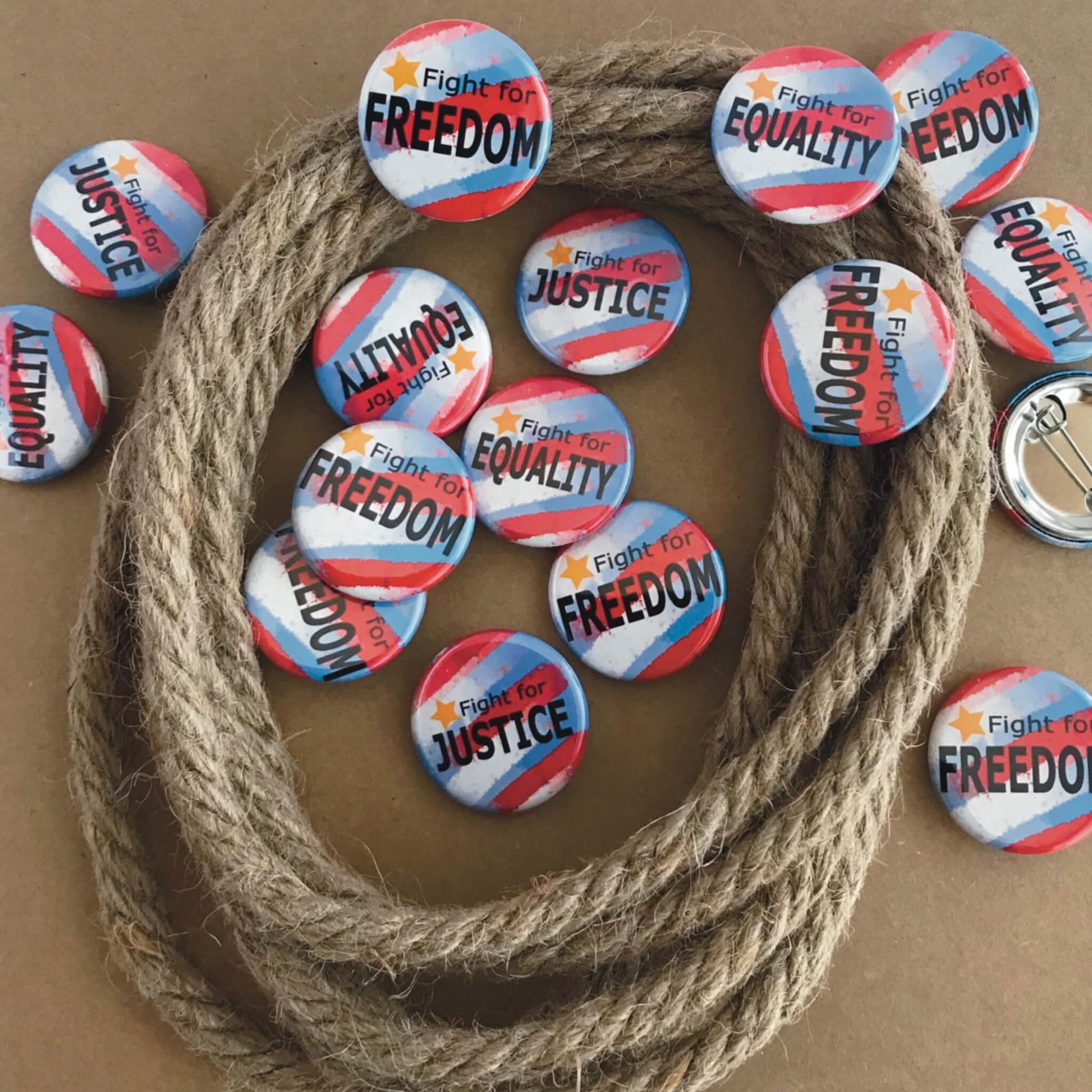 Fight for Freedom Equality Justice Pinback Buttons Set of 3 Protest Buttons Educational Backpack Pins