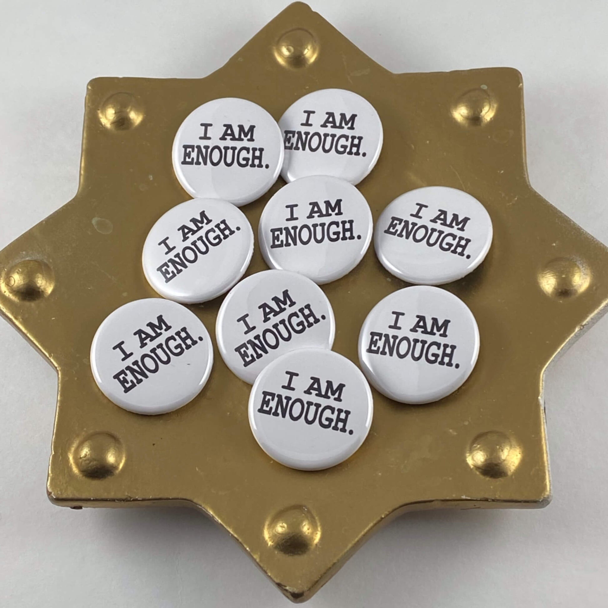 So, why wait? Add a touch of positivity to your life and the lives of those around you with our I AM ENOUGH pin button today! Spread Joy, get two buttons and share with a friend.