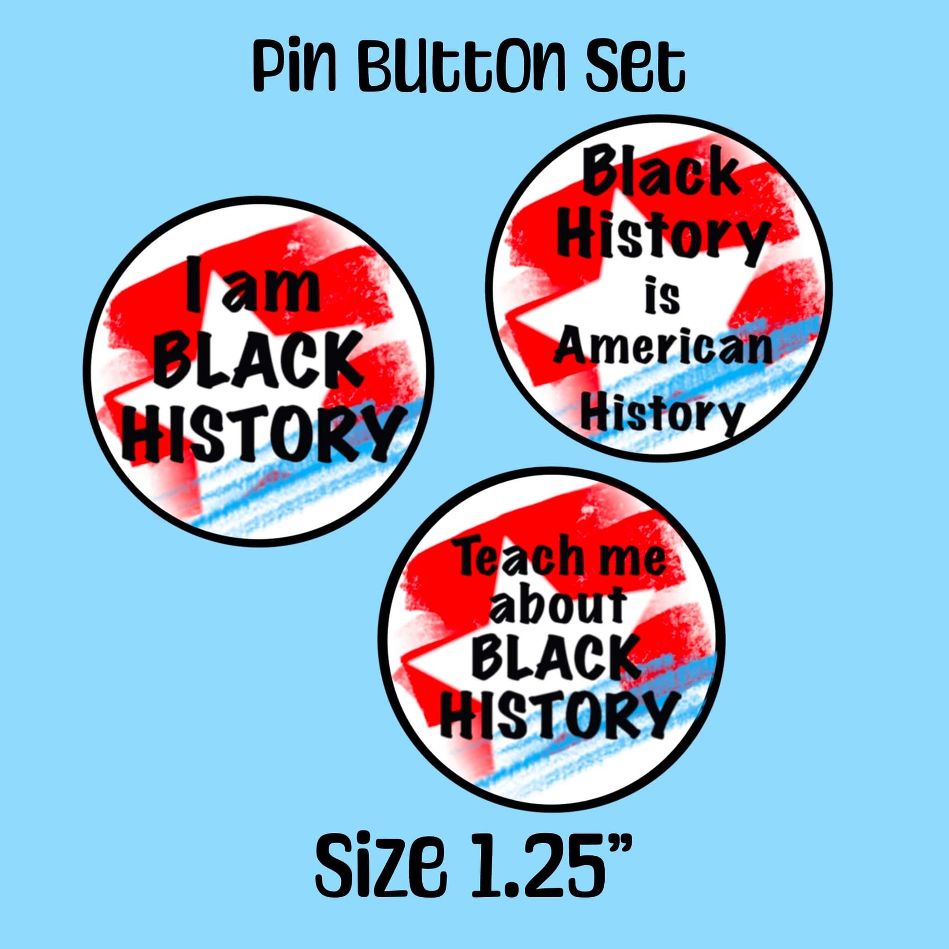 American History Black History Pinback Buttons Set of 3 Educational Pins Empowerment Inspiratonal Pins