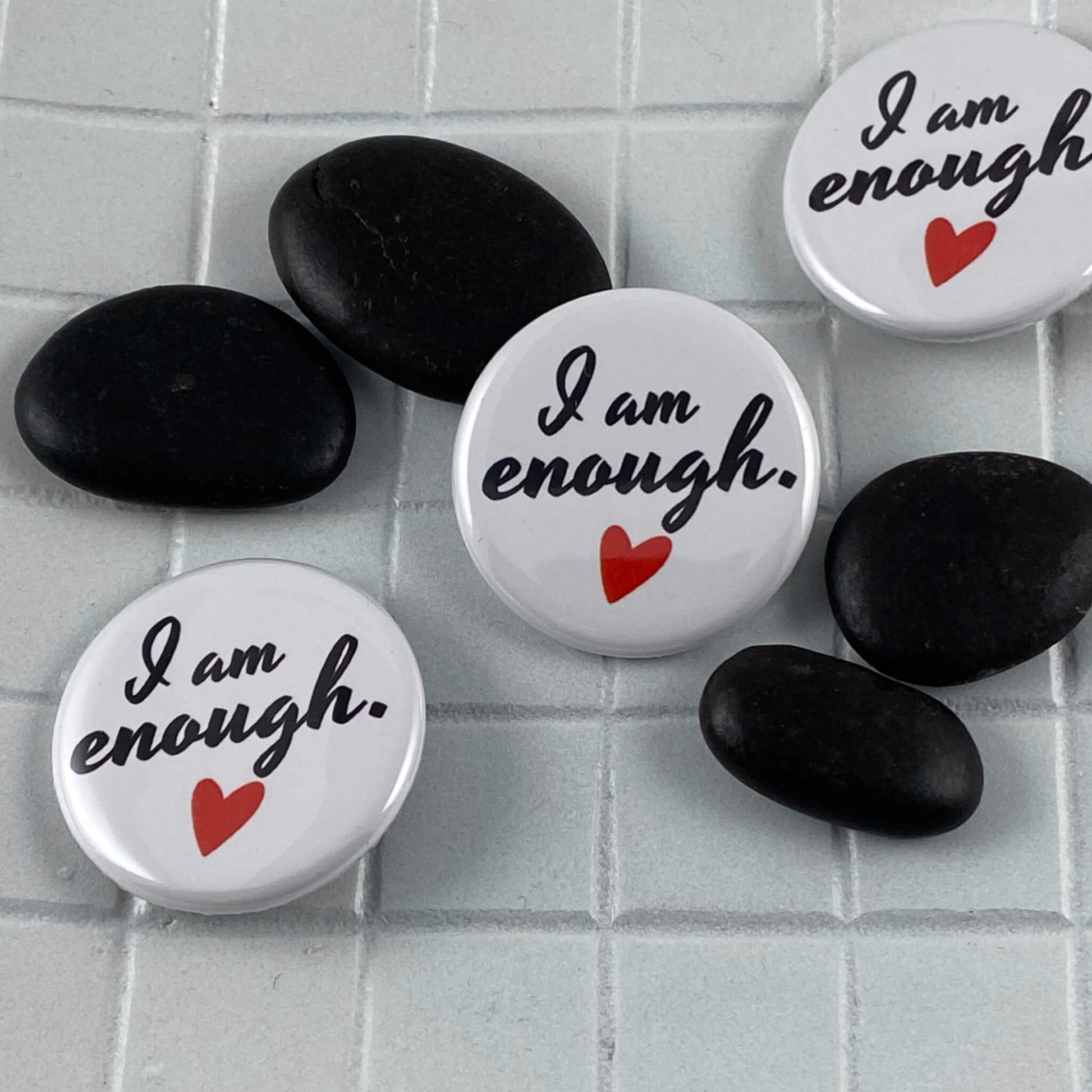 So, why wait? Add a touch of positivity to your life and the lives of those around you with our I AM ENOUGH pin button today! Spread Joy, get two buttons and share with a friend.